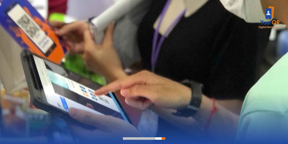 สแกนรับและแจกนามบัตรดิจิทัลด้วยแอป YourQR ถึงลูกค้าใช้แอปอื่นๆ ก็สามารถสแกนรับนามบัตรดิจิทัลได้ พร้อมจัดเก็บลงมือถือได้ทันที แถมยังบันทึกทุกประวัติการใช้งาน