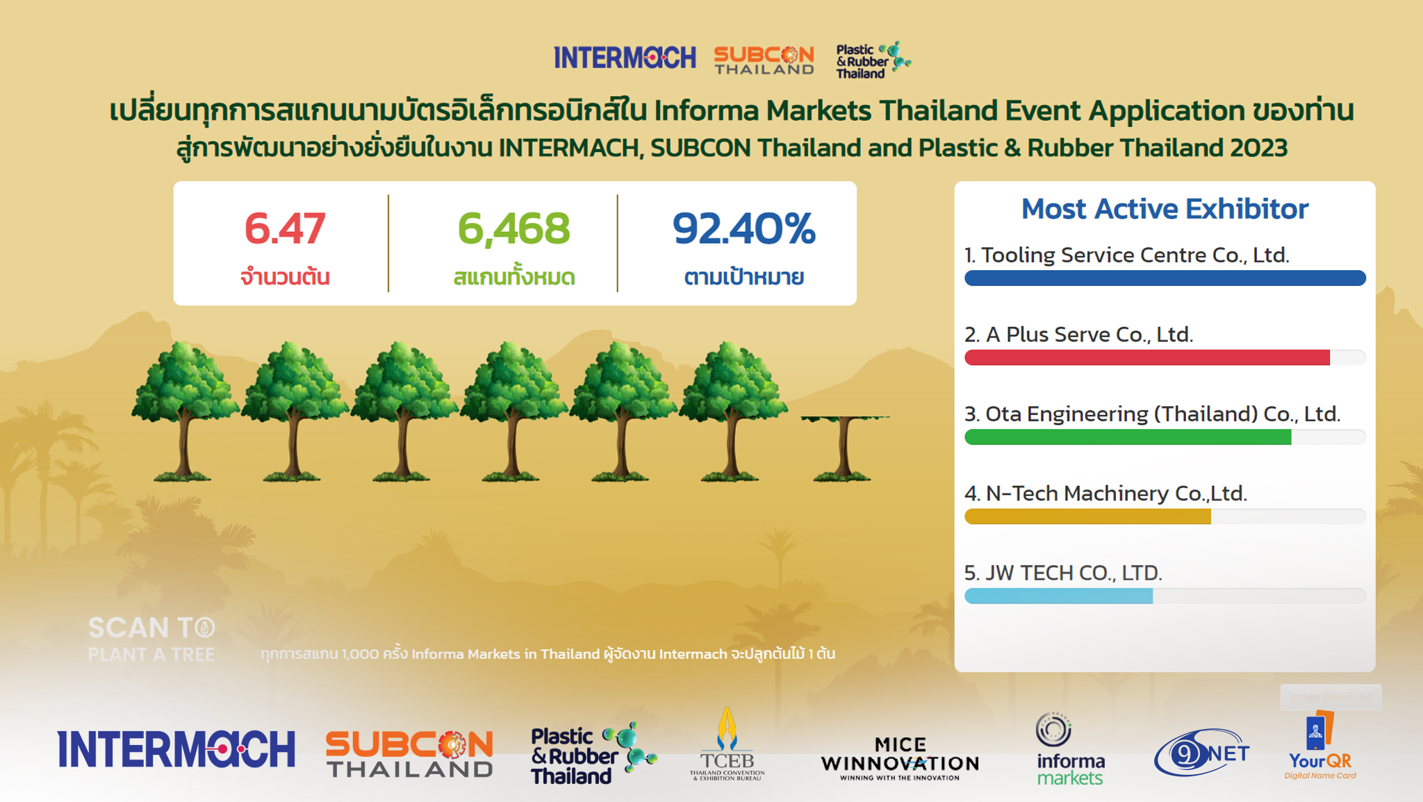 การนำโซลูชั่นของ YourQR เข้ามาใช้ในการจัดงานครั้งนี้ นอกจากจะช่วยลดจำนวนนามบัตรกระดาษ ลด Carbon Footprint ภายในงานแล้ว ผู้เข้าร่วมงานยังได้มีส่วนร่วมสร้างโลกสีเขียวผ่านแคมเปญ “สแกน-แลก-ป่า” โดยทุกๆการใช้งานแอปพิเคชั่น 1,000 ครั้ง ทางโครงการจะปลูกต้นไม้ให้ 1 ต้น