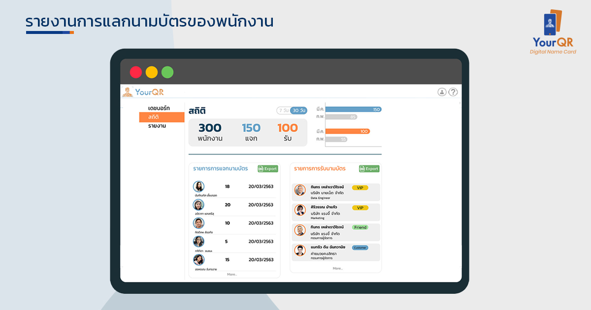 รายงานสถิติการแลกนามบัตร ตรวจสอบได้ง่าย สะดวก