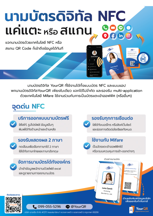 สนใจสั่งซื้อ NFC แจ้งทีมงานได้ทางไลน์ @YourQR หรือ โทร 099-055-5296