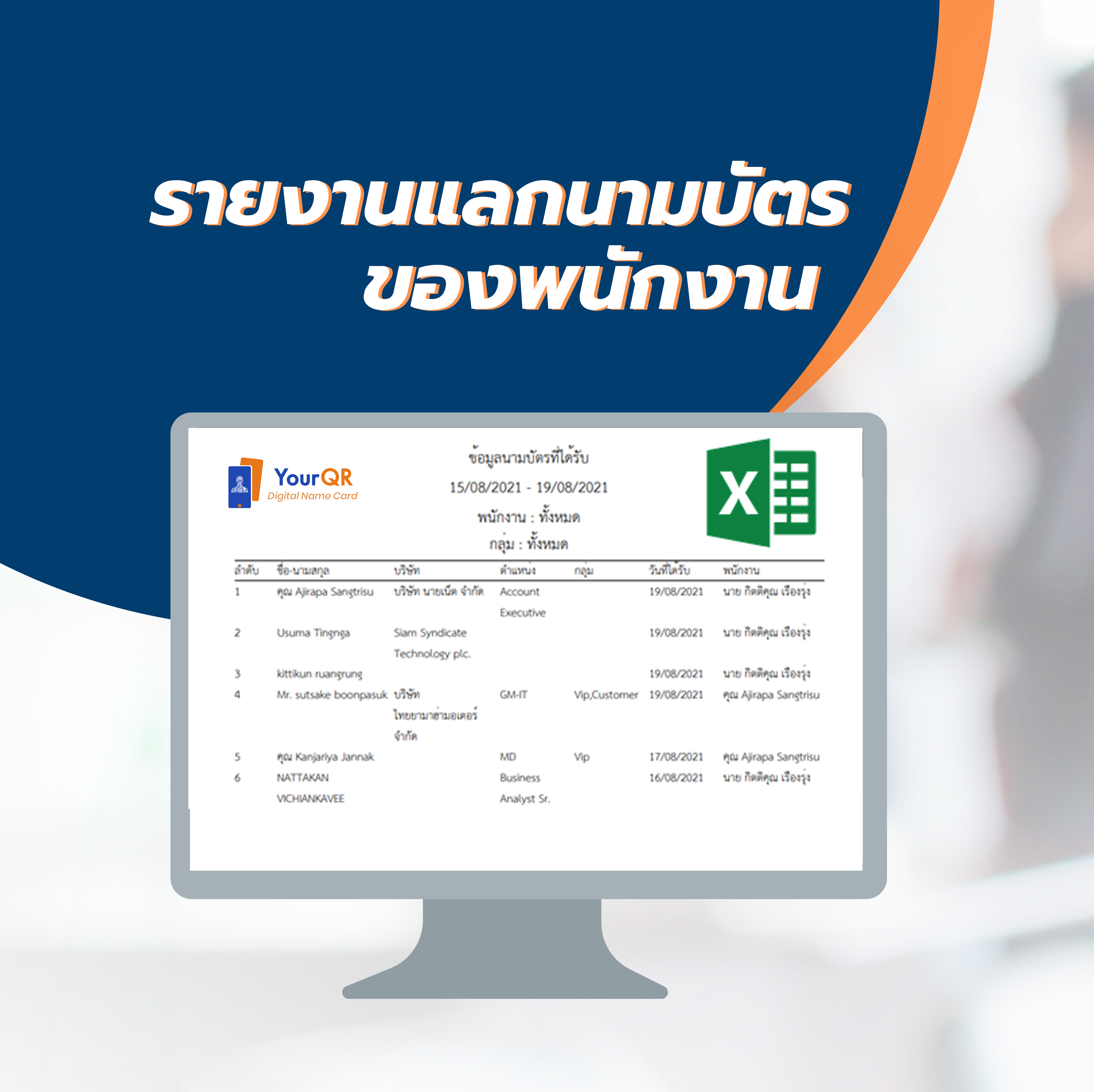 รายงานการแลกนามบัตร และสแกนนามบัตรของพนักงาน